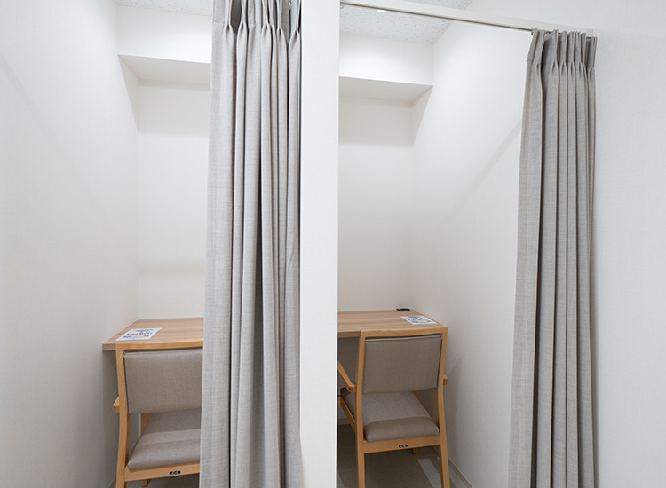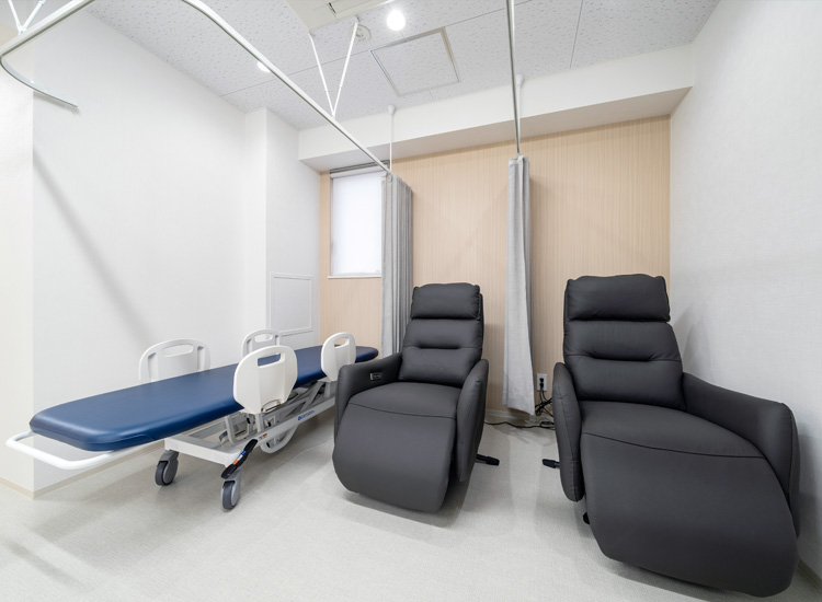 リカバリースペースとなります。内視鏡検査を受けていただいたあとはこちらでゆっくりお休みください。