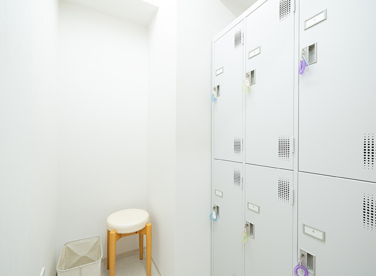 ロッカールームです。大腸カメラを受けていただく際、こちらで検査着に着替えていただきます。